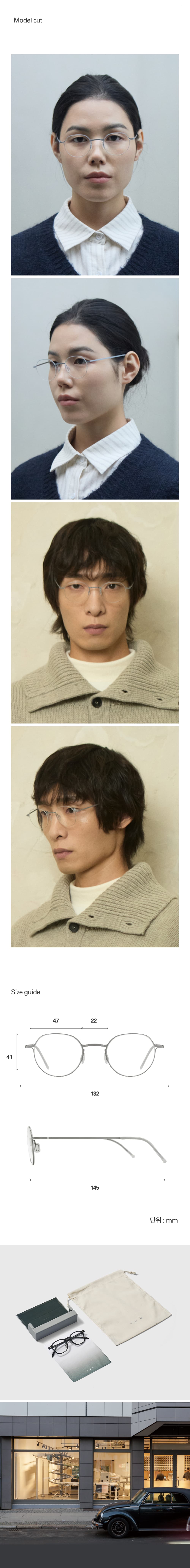 온라인에서 주문하시는 윤의 모든 제품은 기본 피팅 후 발송됩니다. 사람마다 얼굴형과 귀의 높이에 개인 차가 있기 때문에 정교한 피팅을 원하시면 제품 수령 후, 가까운 윤 매장을 방문해주세요. 전문 안경사가 개인 얼굴형에 맞게 피팅 서비스를 제공해드립니다.