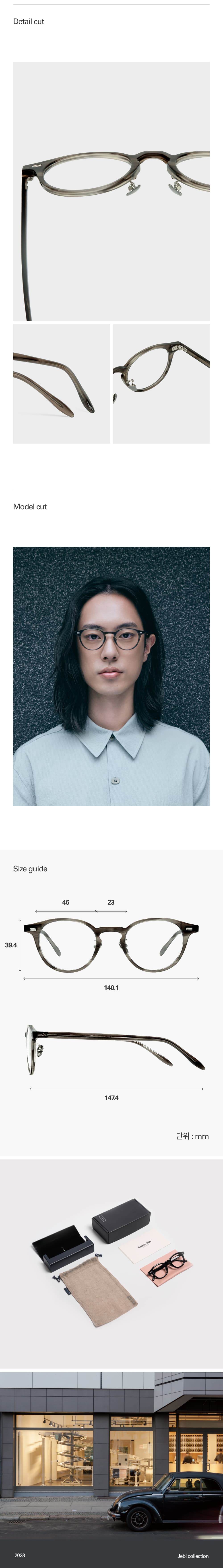 상기 이미지와 같이 윤의 모든 안경 사이즈는 안경 사이즈는 왼쪽 안경 다리 안쪽에 표기됩니다.