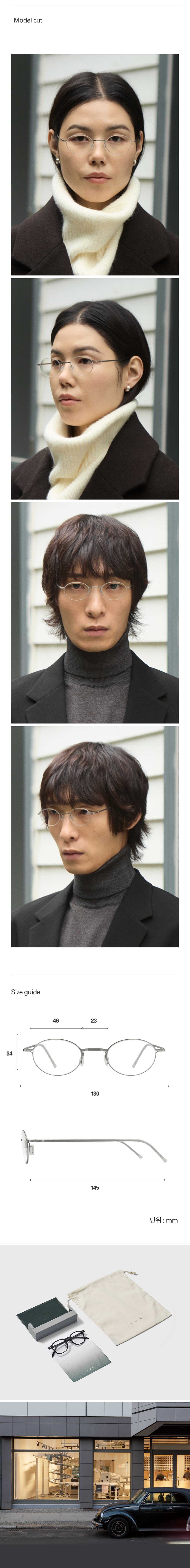 타원형 실루엣의 간결한 오벌 프레임, 자체 개발된 림락리스 슬릿 디자인과 0.55mm 두께의 일체형 프레임이 특징입니다. 10g의 무게, 뛰어난 가벼움, 높은 유연성과 내구성을 갖춘 스테인리스 스틸 소재와 착용감을 향상시키는 3차원의 템플 팁으로 설계되었으며 나일론과 실리콘을 이중 사출한 3차원의 구조와 IP Plating & OBE 나사를 사용하였습니다.