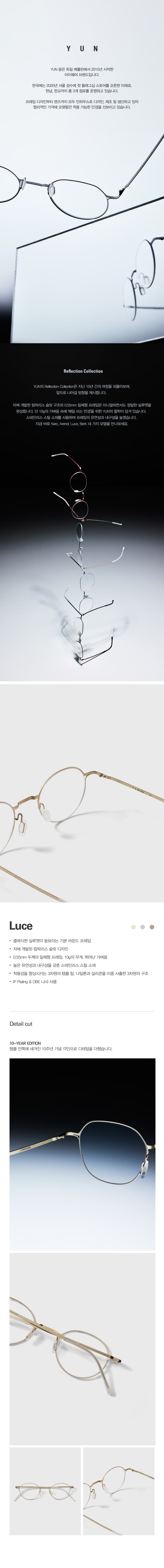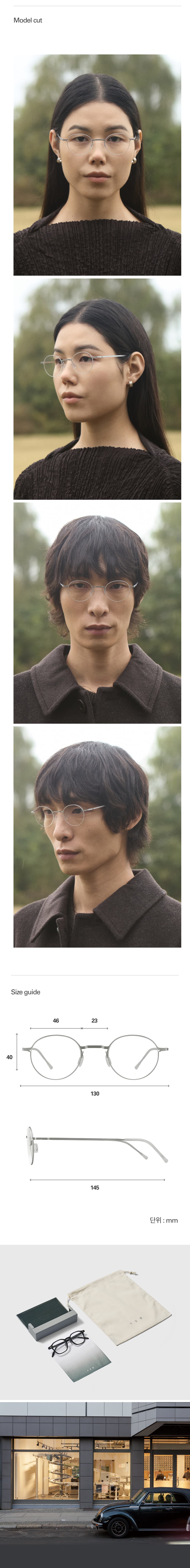 클래식한 실루엣이 돋보이는 기본 라운드 프레임, 자체 개발된 림락리스 슬릿 디자인과 0.55mm 두께의 일체형 프레임이 특징입니다. 10g의 무게, 뛰어난 가벼움, 높은 유연성과 내구성을 갖춘 스테인리스 스틸 소재와 착용감을 향상시키는 3차원의 템플 팁으로 설계되었으며 나일론과 실리콘을 이중 사출한 3차원의 구조와 IP Plating & OBE 나사를 사용하였습니다.