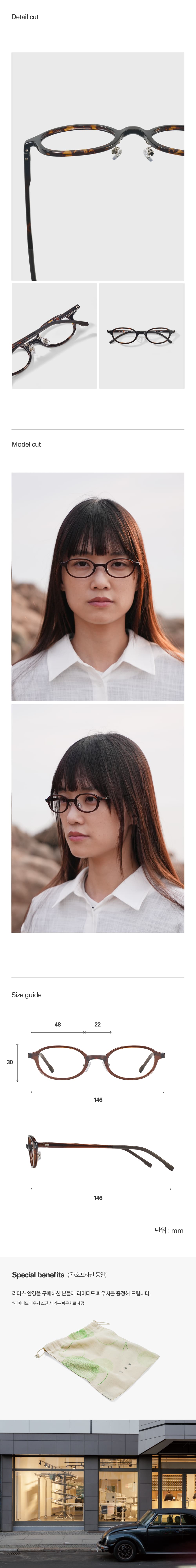 부드러운 고무 소재로 제작된 안경 템플팁은 편안한 착용감을 제공하고, 노즈패드 YUN 로고 각인과 힌지부분 시그니처 메탈 디테일로 특별함을 더했습니다.